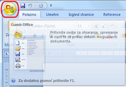 Alatna traka za brzi pristup po zadanim postavkama nalazi se u gornjem lijevom kutu Office programa (Word, Excel, Powerpoint) iznad vrpce (eng. Ribbon) te s desne strane gumba Office.