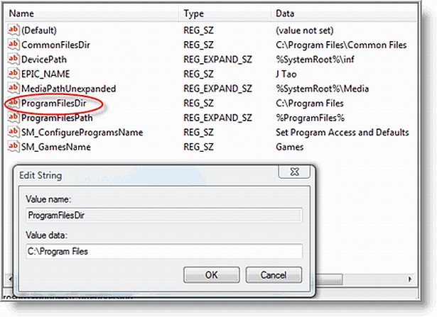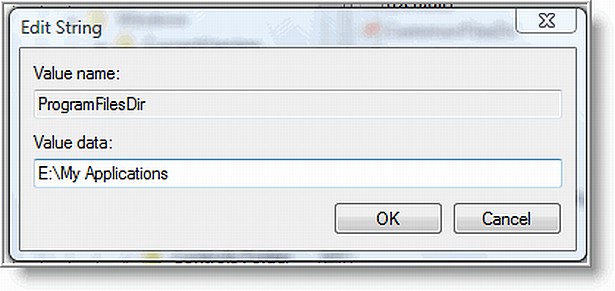 Windows 7 64 bit imaju posebnu zadanu lokaciju za 32 bitne aplikacije i 64 bitne aplikacije. Osim string vrijednosti ProgramFilesDir za 64 bitne aplikacije promijenite i zadanu lokaciju za 32 bitne aplikacije u strnig vrijednosti ProgramFilesDir (x86).
