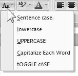 - Pomaknite se na grupu Font na vrpci na kartici Home [Polazno]. Kliknite na Change case ikonu i odaberite kapitalizaciju slova kakvu želite.