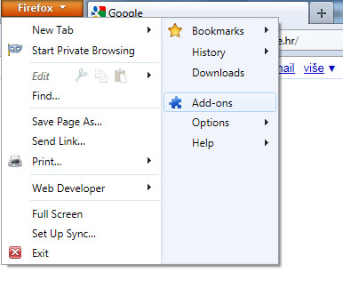 - Kliknite redom na Alati (eng. Tools) ili gumb Firefox -> zatim na Dodaci (eng. Addons) -> pronađite ICQ Toolbar -> zatim kliknite na gumb Ukloni (eng. Remove).
