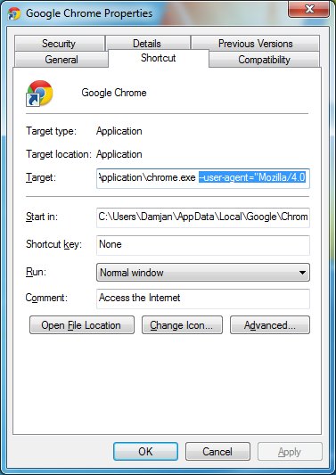 --user-agent="Mozilla/4.0 (compatible; MSIE 7.0; Windows NT 6.0)" |