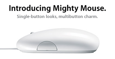 Apple 2005. godine izdaje svoj računalni miš Mighty Mouse, prvi njegov miš sa više od jednog gumba. Njegova prva dva glavna gumba nisu fizička, nego koriste kapacitivne senzore za dodir sa malim zvučnicima, koji proizvode zvuk kliktanja svaki puta kada pritisnemo gumb miša.