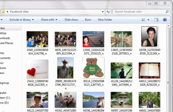 Facebook fotografije su prilično male i brzo se preuzimaju. Trajanje preuzimanja razlikovati će se ovisno o tome na koliko slika ste označeni. Preuzimanje mojih 33 fotografija trajalo je nekoliko sekundi. Kada je preuzimanje fotografija gotovo možete ih pregledavati u mapi gdje su spremljene.