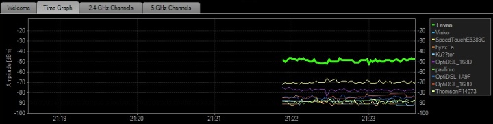 Znači da je naš izbor kanala za mrežu Tavan dobar, jer se frekvencijski pojas bežične mreže preklapa jedino s mrežom Vinko i jednim dijelom s drugom mrežom. Sa koliko bežičnih mreža se preklapa vaša mreža, jeste li sigurno izabrali dobar kanal za svoju mrežu?