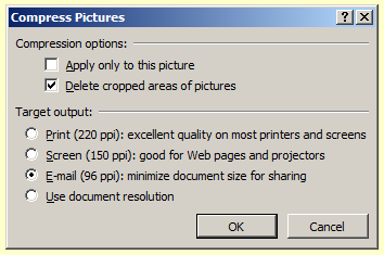 Vaše slike potrebno je kompresirati i prilagoditi potrebama u vašem dokumentu. Primjerice, ako je vaš dokument namijenjen samo čitanju i dijeljenju e-mailom, prilagodit ćete kompresiju slike na vrijednost E-mail (96ppi). U nastavku pogledajte kako možete kompresirati slike u Wordu 2007/2010 i tako znatno smanjiti veličinu Word dokumenta.