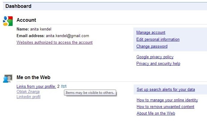 Za prijavu je potreban ponovni unos vaše lozinke. Otvorit će se Nadzorna ploča u kojoj možete vidjeti što sve dijelite s internetom ili drugim Google korisnicima.
