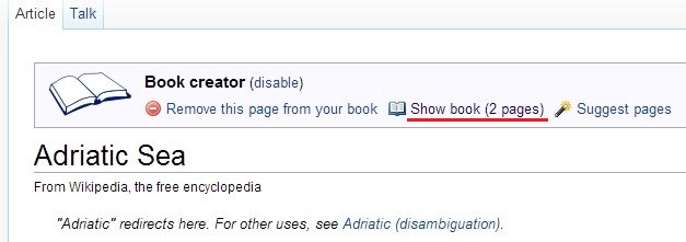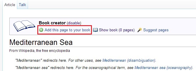 6. One članke koji vas zanimaju možete uključiti u knjigu klikom na Dodaj ovu stranicu u knjigu (Add this page to your book). Također možete kliknuti na gumb Predloži stranice (Suggest pages) koji vam nudi slične članke vezane uz temu koju istražujete.