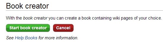 4. Otvorit će se Book creator za stvaranje PDF knjige iz više Wiki članaka. Pritisnite gumb Start book creator za pokretanje stvaranja knjige.