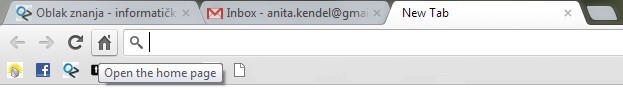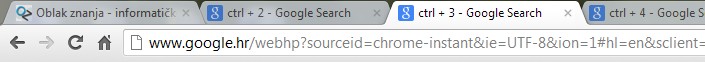 Ctrl + Enter – Dodaje prefiks www. i nastavak. com na tekst u adresnoj traci, a zatim učitava web stranicu. Primjer: upisujemo oblakznanja, pritisnemo Ctrl + Enter i dobivamo www.oblakznanja.com.