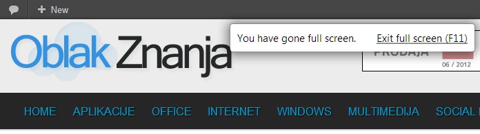 F11 – Otvara preglednik preko cijelog zaslona (full-screen opcija).