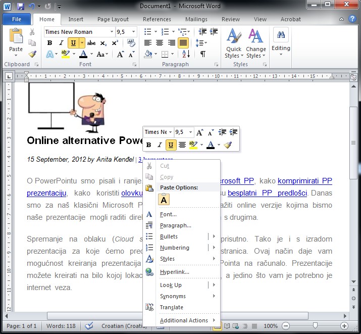 Ponekad kada kopirate tekst iz web stranice i zalijepite ga u Word, vjerojatno ćete s njim prebaciti i hiperveze (eng. hyperlinks) koje ne želite u dokumentu. Danas ćemo pogledati kako možemo ukloniti sve hiperveze, ako ih ne želimo u dokumentu. Za svrhu primjera kopirali smo tekst iz jednog našeg članka.