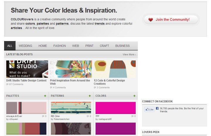 COLOURlovers je zajednica ljubitelja boja u kojoj kreativni ljudi dijele uzorke i palete boja. Web stranica je dobro organizirana s rubrikama poput Kanali (Channel) koji prikazuje prikladne boje za vjenčanja, dom, modu i slično, te Trendovi (Trends) koji prikazuje trendove korištenja boja u različitim medijima.