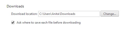 - Ako pak želite odabrati određenu lokaciju za svako preuzimanje, uključite potvrdni okvir Pitaj kamo spremiti svaku datoteku prije preuzimanja (Ask where to save each file before downloading).