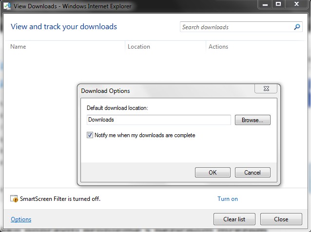 Kliknite gumb Alati (Tools), a zatim Prikaz preuzimanja (View download) kako bi otvorili prozor za preuzimanje datoteka. Kliknite na link Opcije (Options) dolje lijevo za otvaranje prozora s opcijama za preuzimanje.