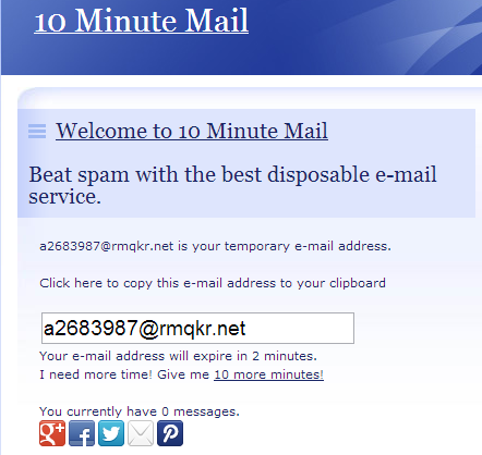 10 Minute Mail jedan je od najkorištenijih web servisa za jednokratne e-mail adrese. Korisnicima nudi mogućnost korištenja nasumično generirane, privremene e-mail adrese koje vrijede 10 minuta. Možete osvježiti stranicu kako bi vidjeli jeste li primili nove poruke. Ispod okvira s adresom piše vrijeme koje je preostalo za korištenje postojeće adrese. U slučaju da vam treba više vremena, jednostavno kliknite na link koji kaže: “Trebam još vremena! Daj mi 10 minuta više!” Odbrojavanje će ponovno krenuti od 10 minuta, a vaša jednokratna e-mail adresa ostati će ista.