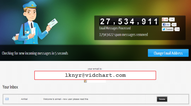 Airmail djeluje gotovo kao pravi e-mail servis. Dobijete zvučnu obavijest odmah po dolasku novog e-maila, a svoje poruke možete provjeriti iz bilo kojeg preglednika na bilo kojem računalu kopiranjem URL-a svojeg pretinca. Adresa će trajati dok god je provjeravate. Ako prestanete, samouništit će se nakon 24 sata.