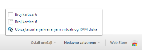 Ako želite otvoriti posljednju zatvorenu karticu, možete koristiti tipkovnički prečac CTRL+SHIFT+T. Pomoću ove metode možete otvoriti zadnjih 10 kartica. Osim ovoga, možete otvoriti novu karticu, kliknite desnom tipkom miša na naziv Nova kartica te iz skočnog izbornika odaberite opciju Ponovno otvori zatvorenu karticu.