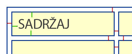 Na slici gore cell padding označen je zelenom linijom, a cell spacing crvenom linijom.