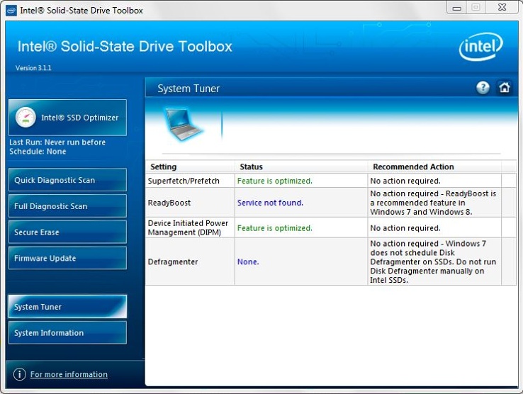 Intel Solid-State Drive Toolbox je alat koji omogućuje najlakše korištenje optimizacijskog procesa i redovito se ažurira. Osim toga, budući da mnogi od Intelovih starijih diskova nemaju mogućnost tzv. pozadinskog sakupljanja smeća, Intel je morao osmisliti svoj alat koji će imati mogućnost ručnog pokretanja. Ova mogućnost se također može zakazati za automatsko pokretanje, što je prilično zgodno za vlasnike starijih Intelovih SSD diskova.