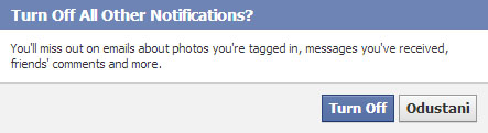 Ako vas je netko označio na fotografiji ili komentirao vaš status, odmah o tome dobivate obavijest putem elektroničke pošte. Ako se to počinje događati svakodnevno, vrlo brzo će vaš poštanski sandučić biti blokiran mnogobrojnim obavijestima od strane Facebooka.