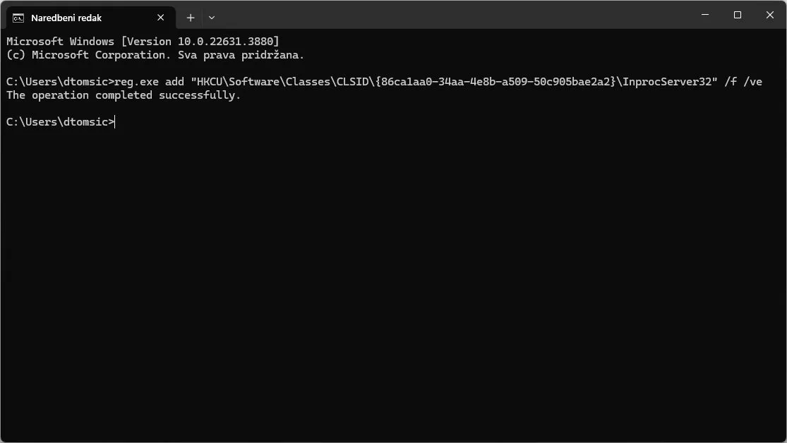 Kopirajte naredbu ispod, zalijepite je u Windows Terminal prozor i pritisnite Enter.