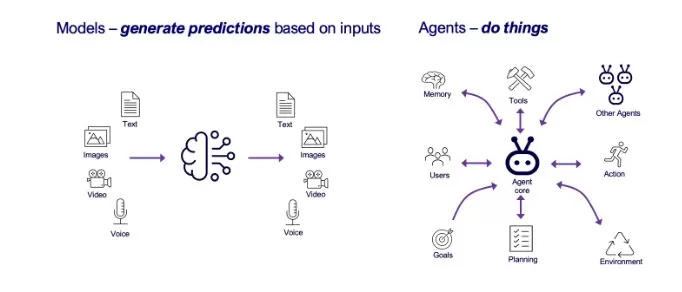 AI agenti mogu obuhvaćati širok raspon funkcionalnosti izvan obrade prirodnog jezika, uključujući donošenje odluka, rješavanje problema, interakciju s vanjskim okruženjima i izvršavanje radnji.