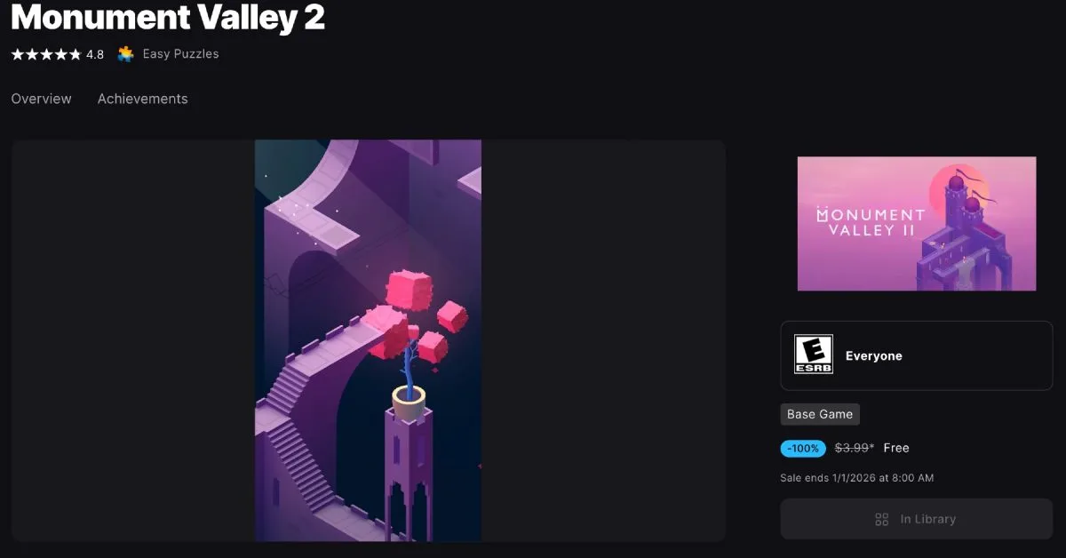 Evo kasnog božićnog poklona za vas, u slučaju da već ne posjedujete ova dva apsolutna klasika. U trgovini Epic Games Store (preuzmite ovdje), možete uhvatiti i Monument Valley i Monument Valley 2 potpuno besplatno, može se igrati na Androidu.