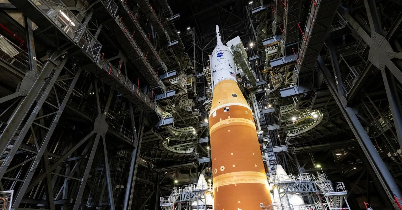 Kad je NASA nova raketa za Mjesec poleti čim 1. travnja, njezina ogromna središnja faza pomiješat će 537.000 galona tekućeg vodika sa 196.000 galona tekućeg kisika i zapaliti pogonsko gorivo u četiri motora široka osam stopa, proizvodeći oko 1,7 milijuna funti potiska. Ubrzo nakon što se ti glavni motori zapale, dva raketna pojačivača na kruto gorivo, po jedan sa svake strane, upalit će svoje pogonsko gorivo nalik na barut kako bi dodali 3,3 milijuna funti potiska svaki.