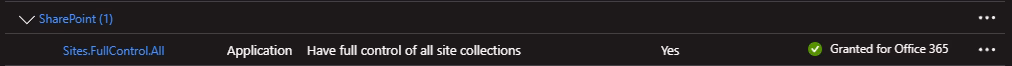 Zatim se moramo pobrinuti za konfiguraciju koja se odnosi na autentifikaciju. Budući da ćemo koristiti tijek vjerodajnica klijenta, moramo imati registraciju aplikacije i konfigurirati željeni certifikat pod Certifikati i tajne stranica. Slijedimo potpuno iste korake kao kada konfiguriramo CBA za bilo koju drugu aplikaciju, tako da ovdje neću dodavati snimke zaslona i slično. Trebate li ih, ovaj članak pokriva glavne korake procesa. Jedina je razlika u pogledu potrebnih dozvola. Za naše potrebe trebamo Sites.FullControl.All dopuštenje aplikacije iz SharePoint resursa. NIJE Graph resurs, iako nudi potpuno isti opseg!